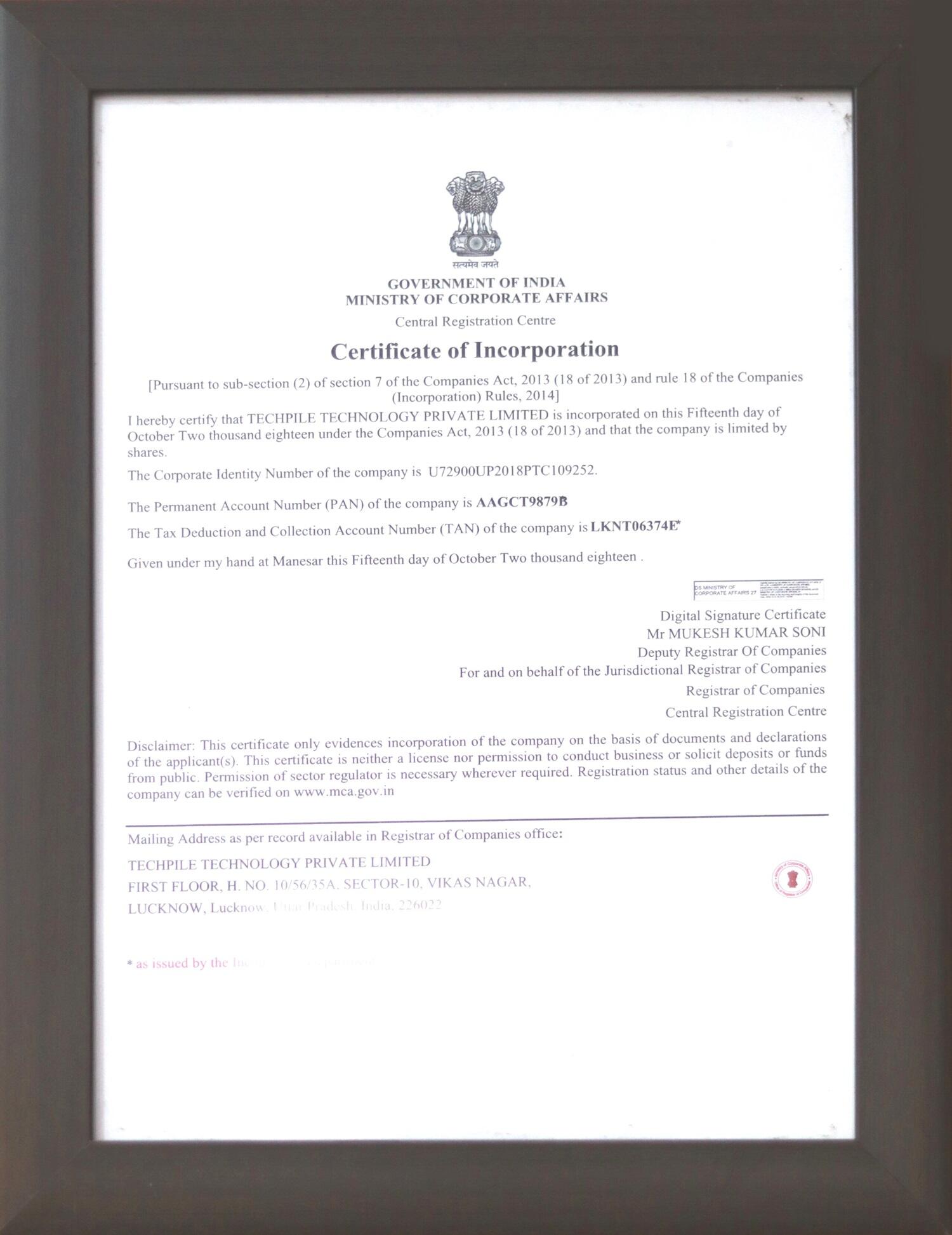 We are authorize By Ministory of Corporate Affiare and ISO.